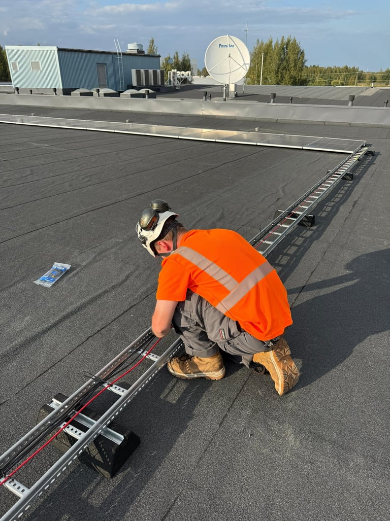 Tiimillämme on useiden vuosien kokemus aurinkopaneelien asennuksista ja huolloista. Olemme työskennelleet erilaisten paneelimerkkien ja inverttereiden kanssa, joten tunnemme järjestelmien erityispiirteet ja osaamme löytää parhaat ratkaisut eri kohteisiin. Asiakkaamme voivat luottaa siihen, että työ tehdään ammattitaidolla ja huolellisesti alusta loppuun.